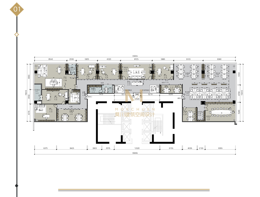 設(shè)計說明:本項目為辦公場所,為了突出其豪華大氣,在材質(zhì)與顏色的選擇上,以紅木與金色為主,在傳統(tǒng)造型結(jié)構(gòu)上加以簡化,讓其更符合現(xiàn)代人的生活與審美,但同時又不失原有的宏偉大氣,起到了即創(chuàng)新又傳承的作用。同時考慮使用功能以及采光與通風等要素,整個空間都是明亮舒適的,以大通的形式呈現(xiàn)。從而營造舒適的辦公空間。