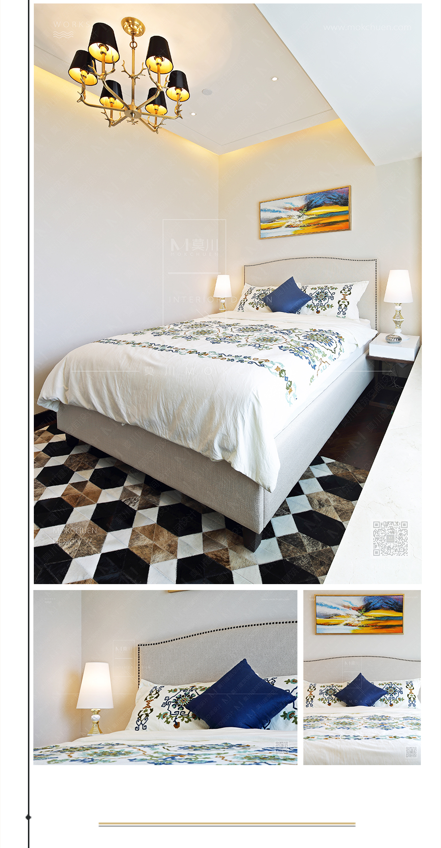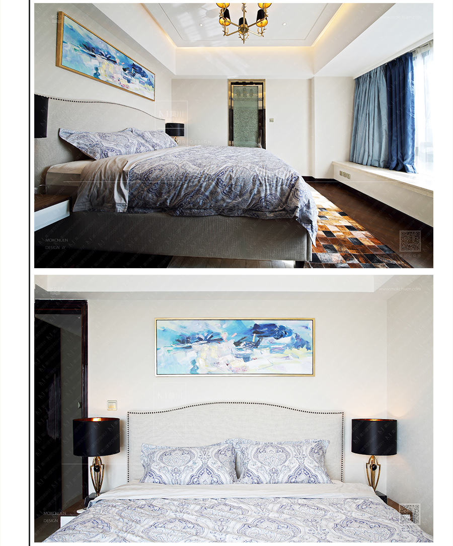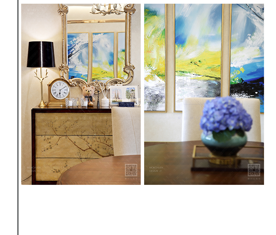 裝飾掛畫均是由畫師純手工繪制,畫面的筆觸非常清晰,色彩的飽和度,都與空間色彩相互融合,現(xiàn)場的畫面質(zhì)感和觸感更為強烈。足以說明設計的恰到好處要從細節(jié)出發(fā)。
