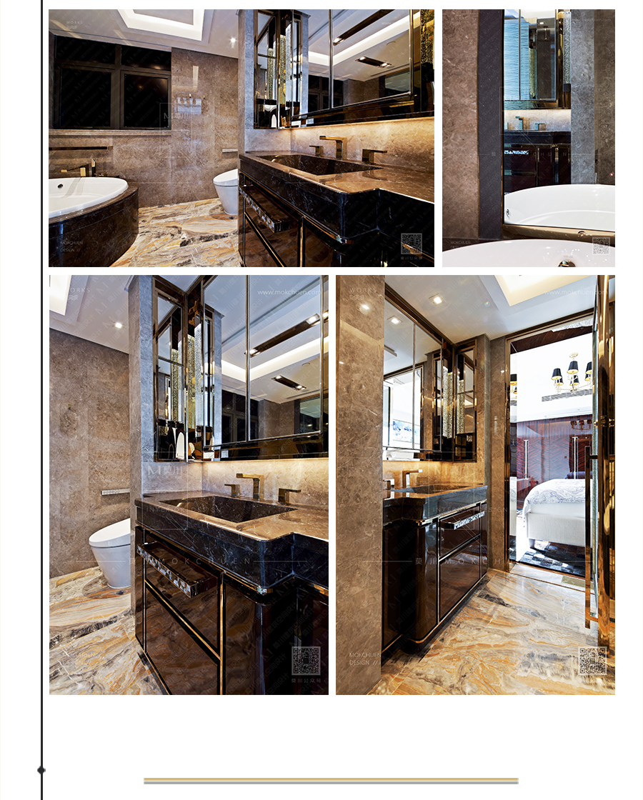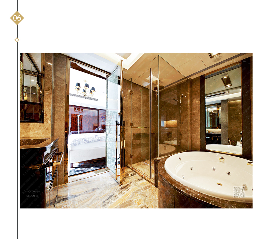 采用了玫瑰金鋼條作為裝飾,給我們感覺高檔大氣的同時,在鏡面的折射下,讓空間顯愈加寬廣敞亮。
