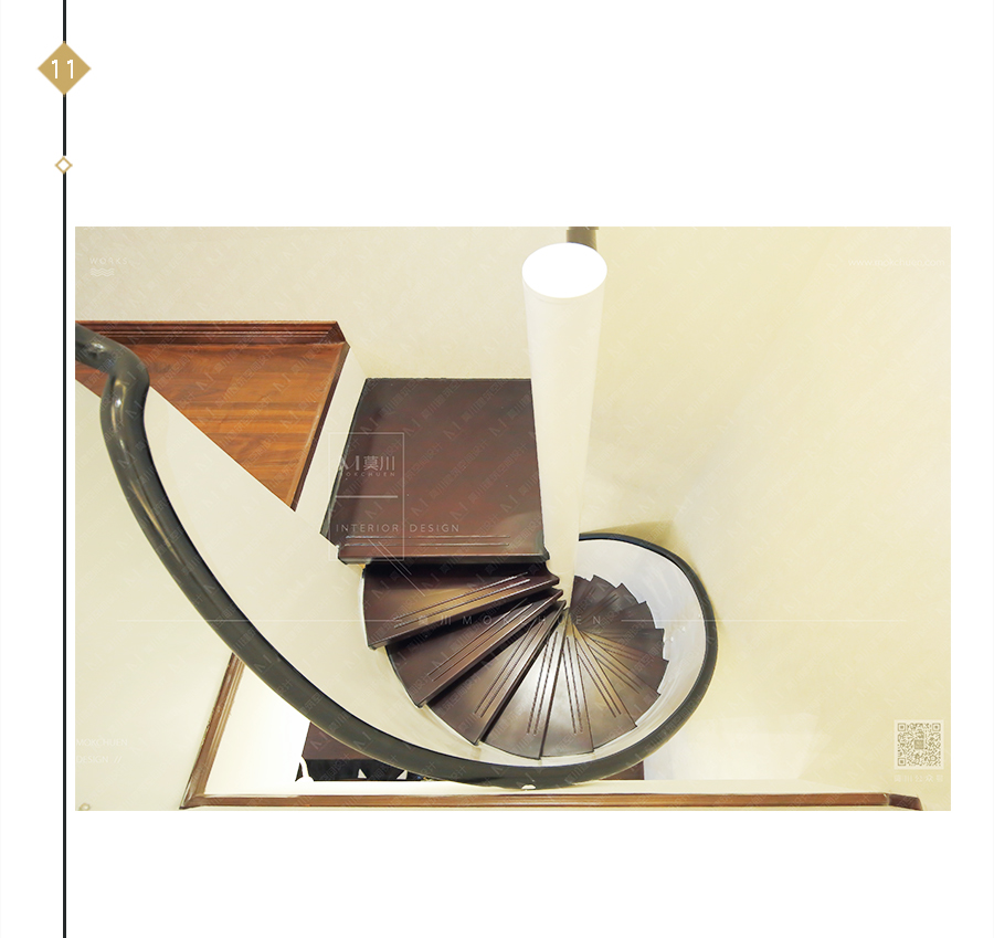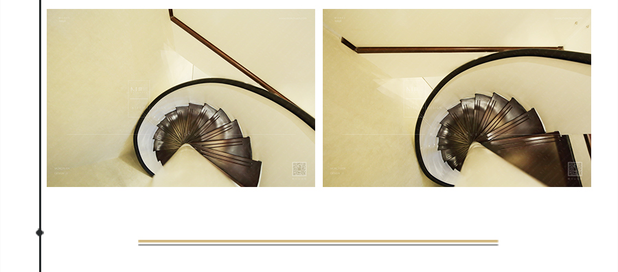 此處原始為6米高的空間,中間加蓋一層樓板,上下分別為書房和琴房,為了節(jié)省空間以及美觀考慮,采用旋轉(zhuǎn)樓梯。