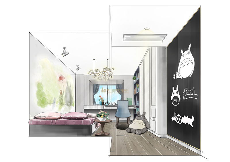 小孩房與廚房之間厚拆除后,用接位手來把空間最大化利用率,飄窗改造為書桌,滿足小朋友的學(xué)習(xí)區(qū)問題。
