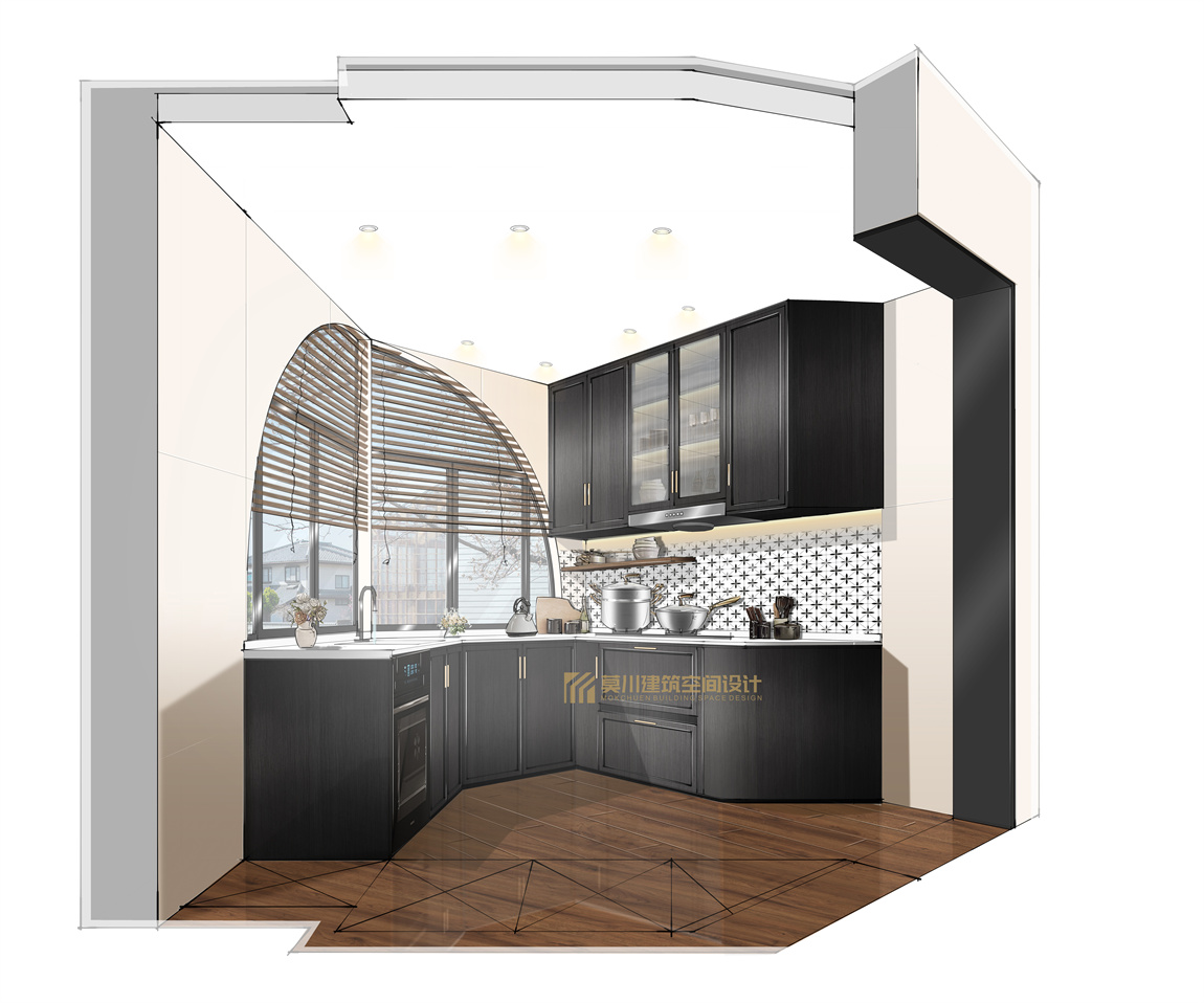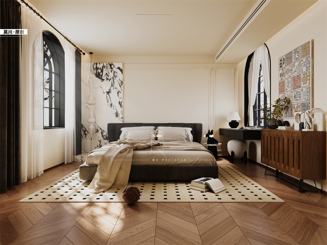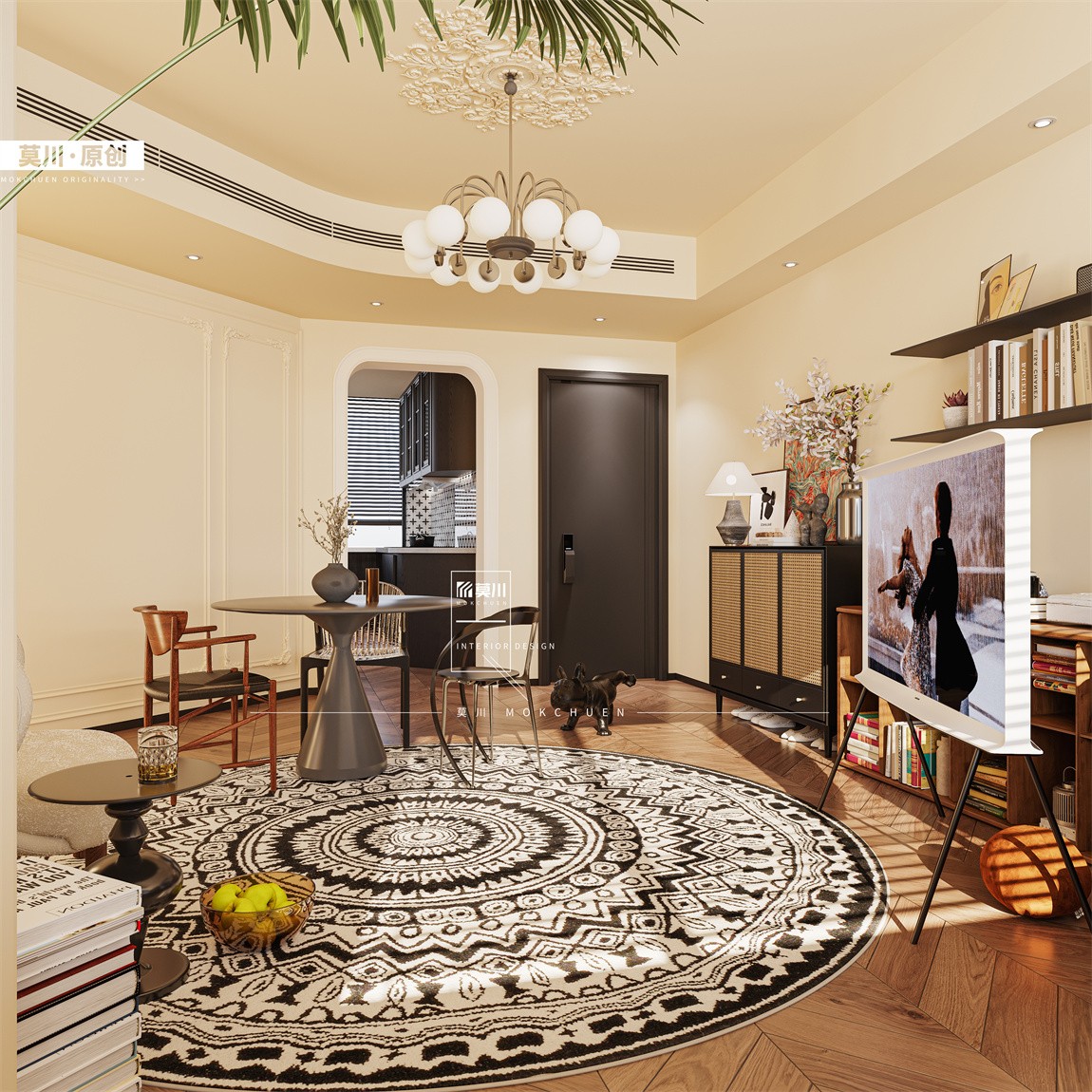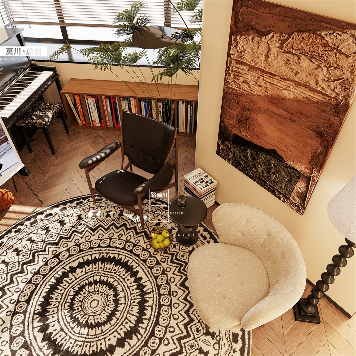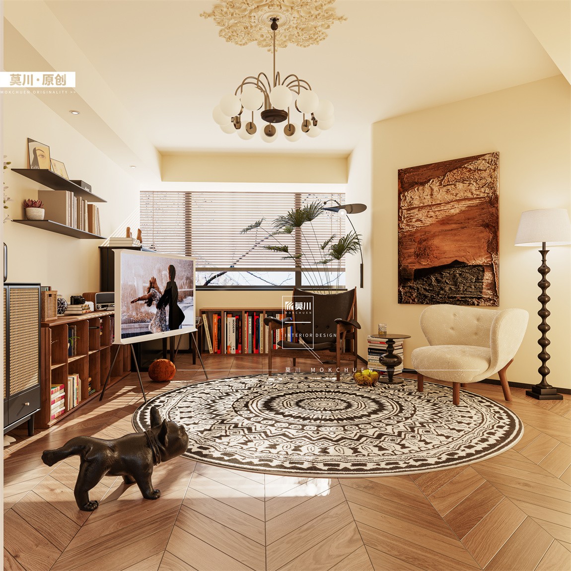 攝入中古元素,空間層次的感受,造型的構(gòu)造,整體空間感受,以及空間之間的互動性,陽臺納入客廳后整個空間的延申感強,闊大空間,原本次臥改成一帽間,將空間充分利用,開放式廚房將廚房空間打開,增強了生活的交互體驗