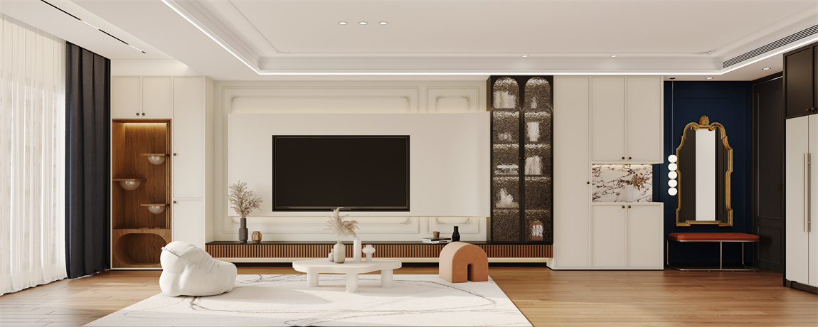 取消屏風(fēng)隔斷,增加空間通行便利性,通透感。