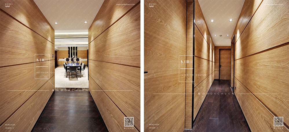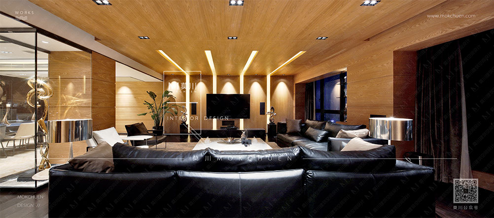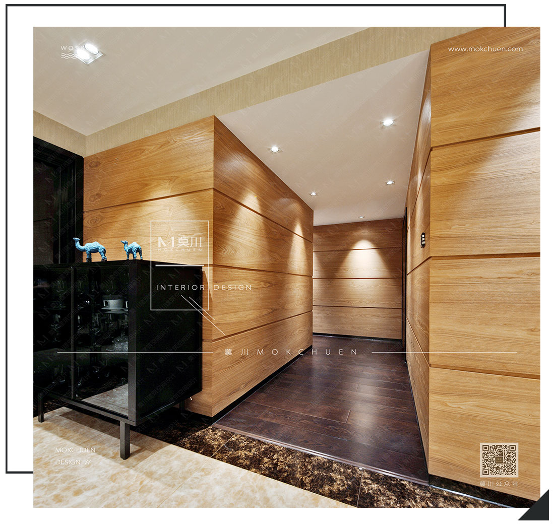 射燈的投射,顯得木色空間溫潤(rùn)有光澤。這是選自于威爾仕利的一款飾面板,注以暖色水漆,品味與溫馨的氛圍驟然成。
