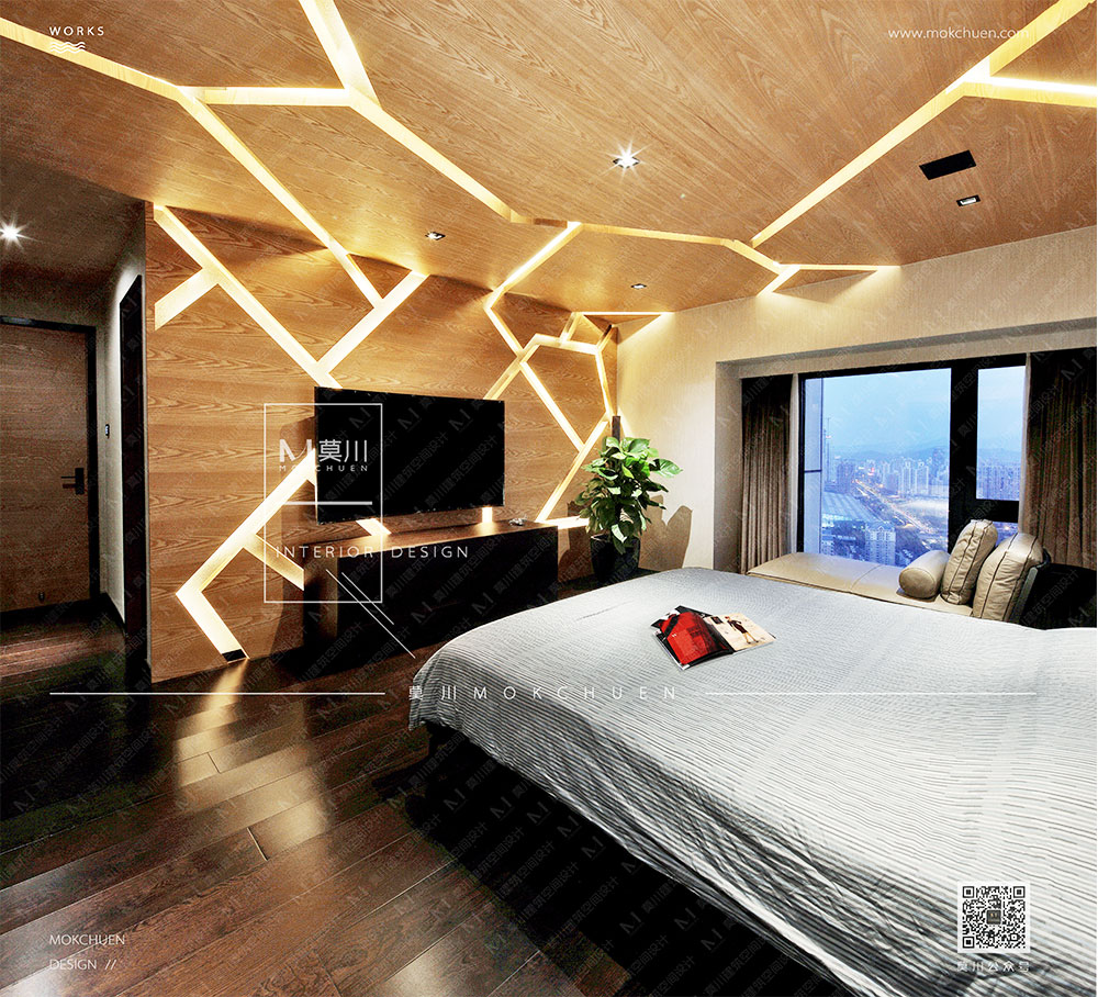 業(yè)主的兒子是一位國(guó)字號(hào)花樣滑冰選手,代表中國(guó)深圳得過(guò)大獎(jiǎng)。設(shè)計(jì)師給熱愛(ài)滑冰的他,設(shè)計(jì)了一個(gè)富有幾何感和設(shè)計(jì)感的空間,天花好如天然冰紋,燈帶走向就好如“速度”與“閃電”的蘊(yùn)意。