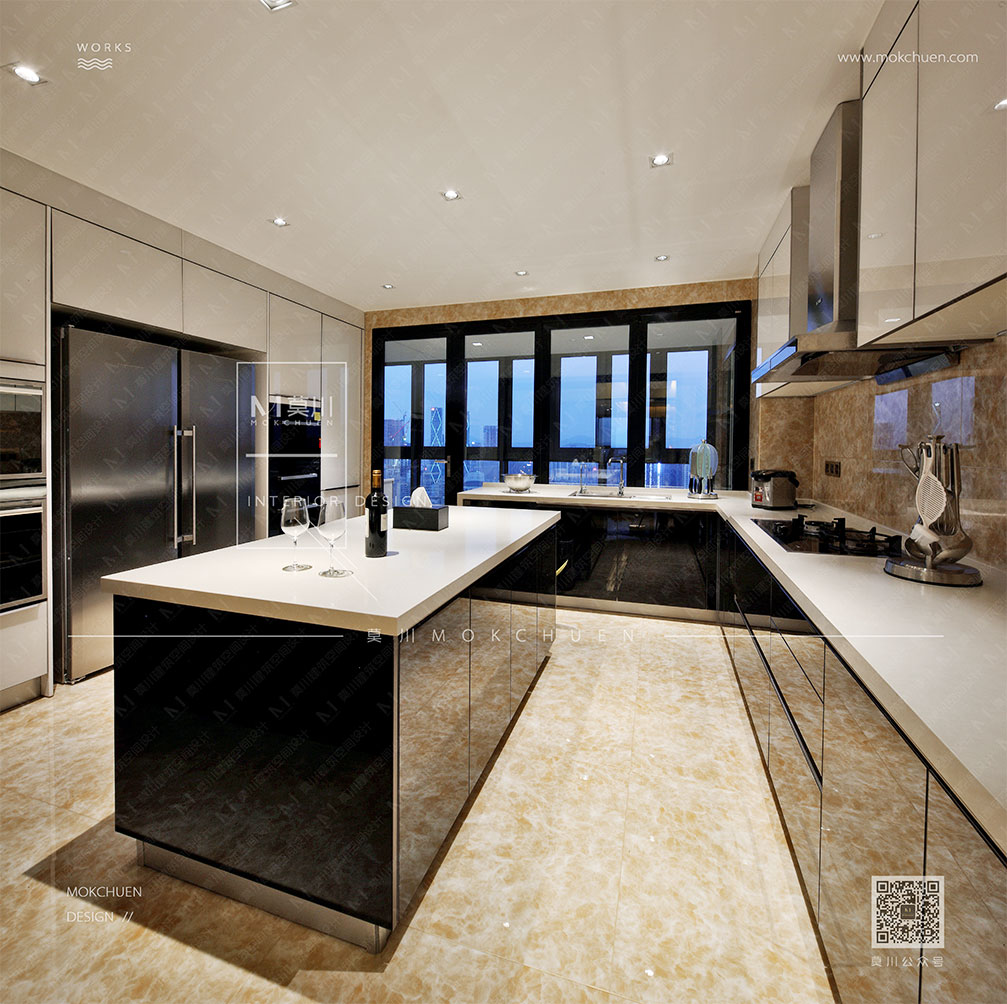 L型的格局、大中島的設(shè)計(jì),暖黃色的大理石地板,彰顯奢華與溫馨。