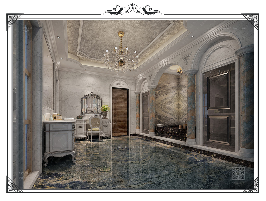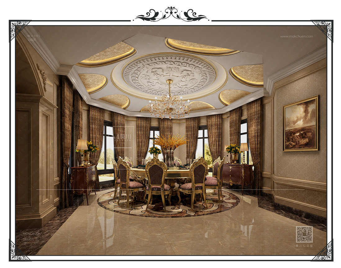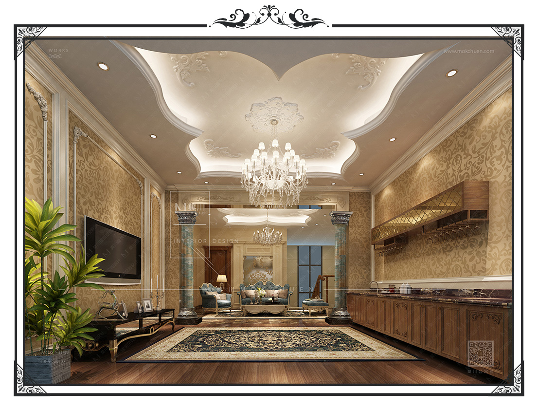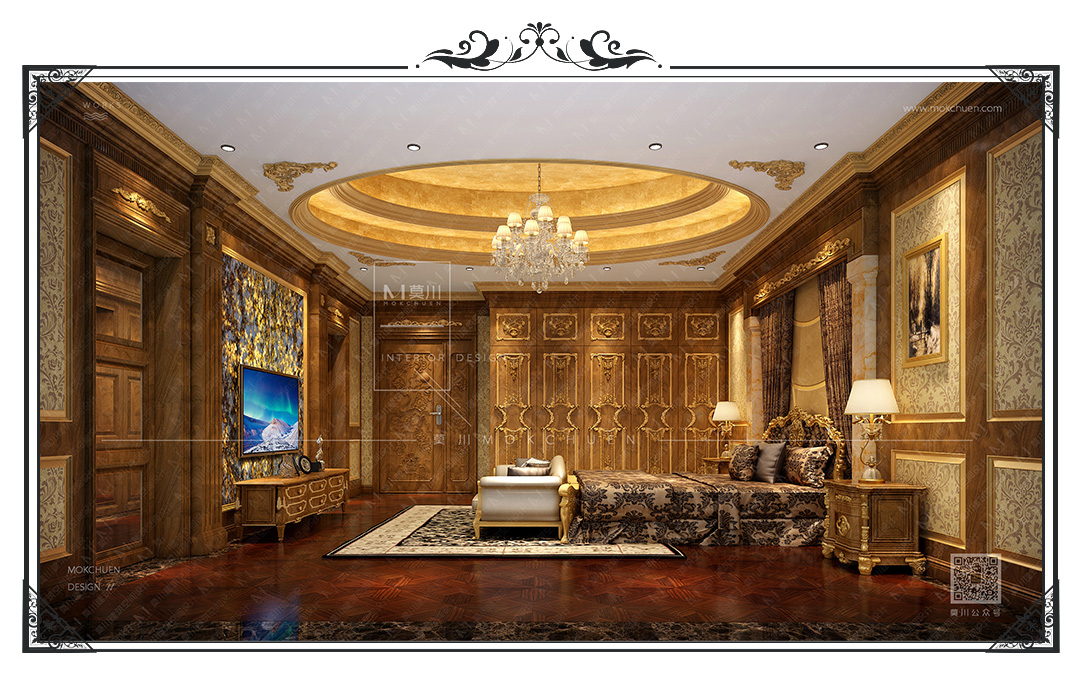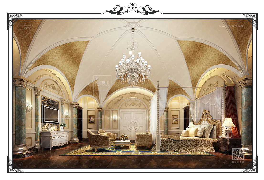 主臥極富貴族氣息的吊頂,搭配上歐式花紋,讓人有一種進(jìn)入皇宮的錯(cuò)覺(jué)。