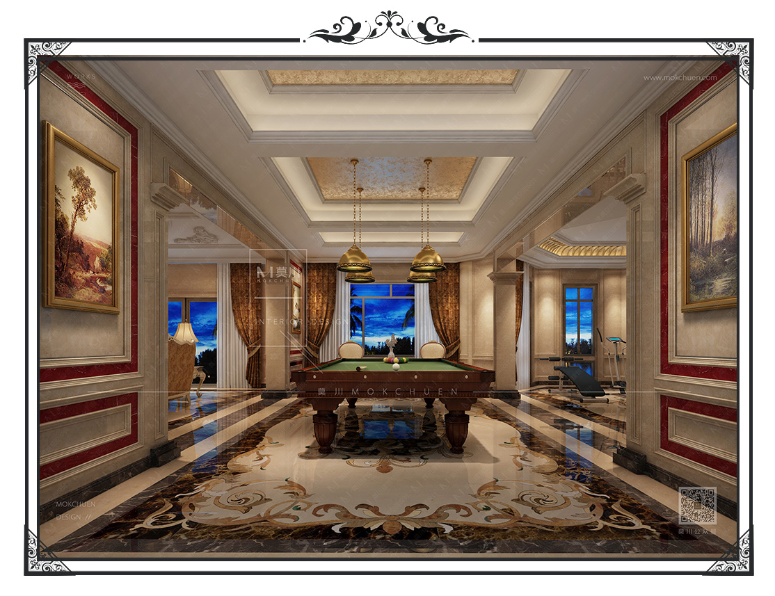 異域風(fēng)情的地板花紋,窗外是遠(yuǎn)方的美景,和好友小酌幾杯打上幾桿,何嘗不是人生樂(lè)事。