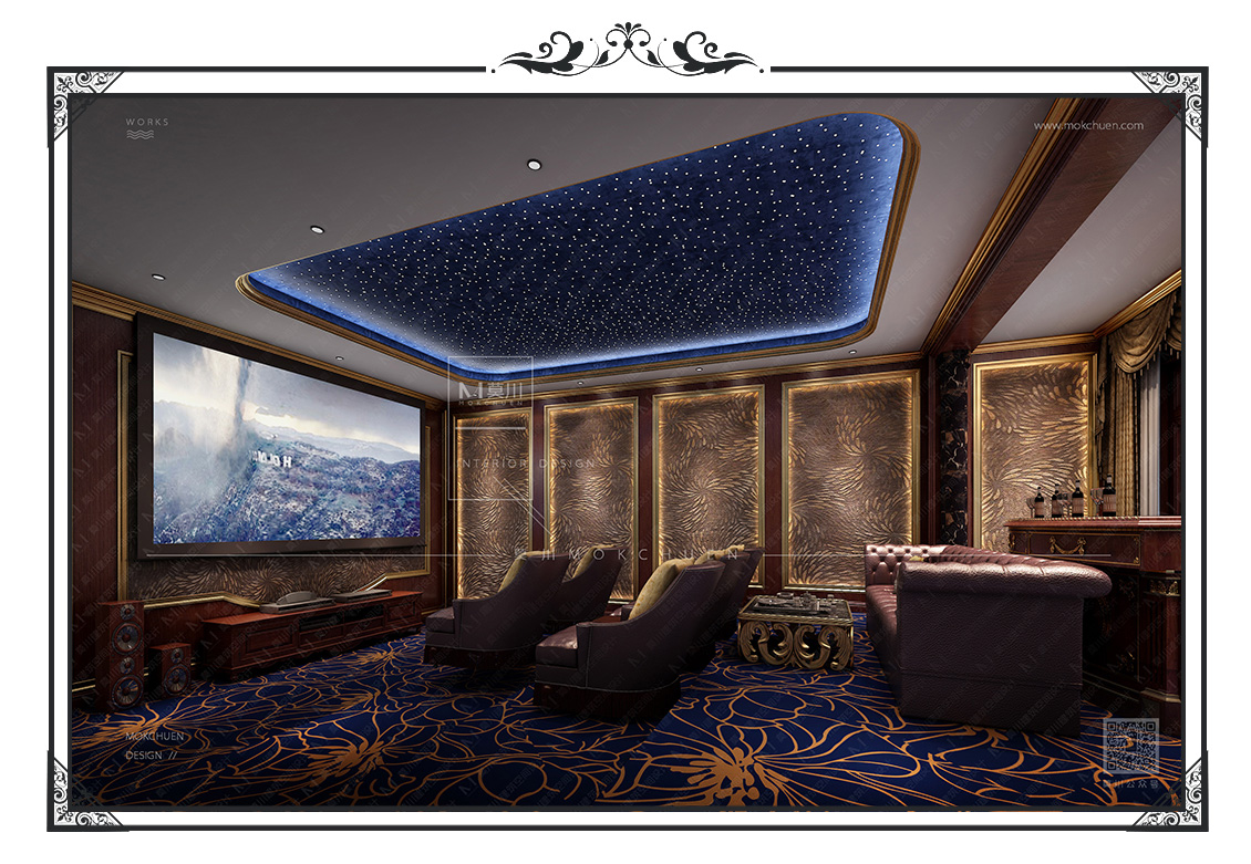 天藍(lán)色的吊頂布上黃色星光,你看哪顆才是最亮的那顆呢?天藍(lán)色地毯的金色花紋與吊頂顏色遙相呼應(yīng)渾然一體,超大的LED墻更是一種視覺(jué)享受。