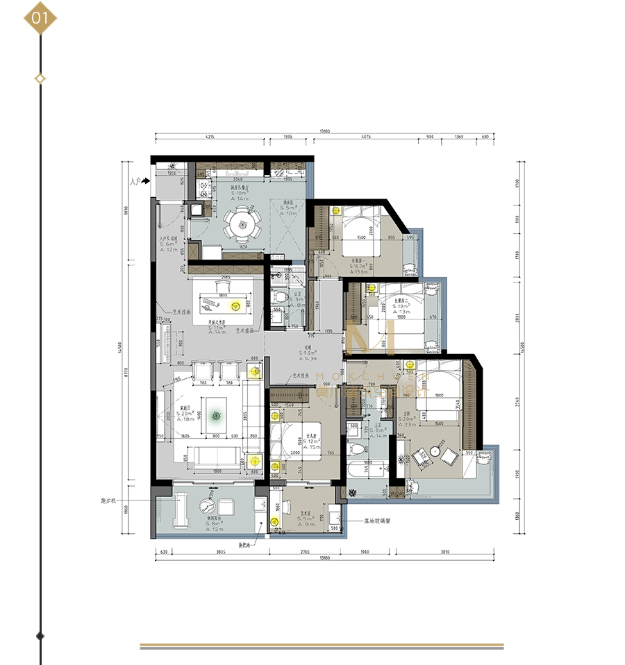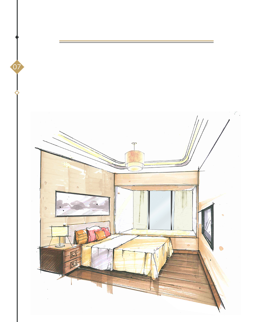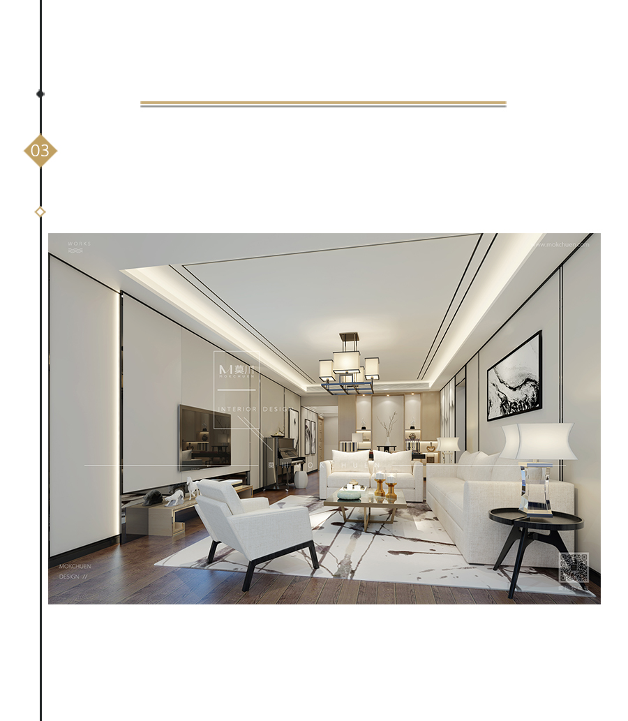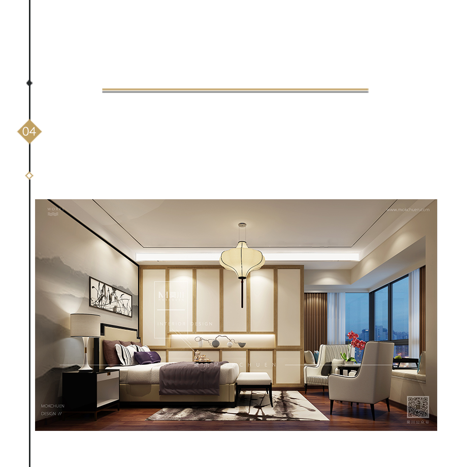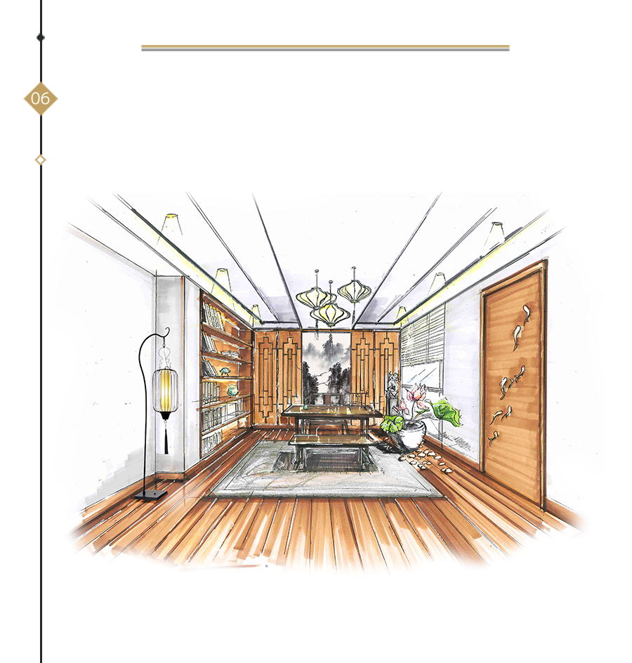 因本案例較為特殊,居住人口較多而且主要以老人家為主。所以設(shè)計師從綜合考慮設(shè)計該案例。設(shè)計靈感主要來源于居住者的書法愛好及業(yè)主對中式風(fēng)格的要求。