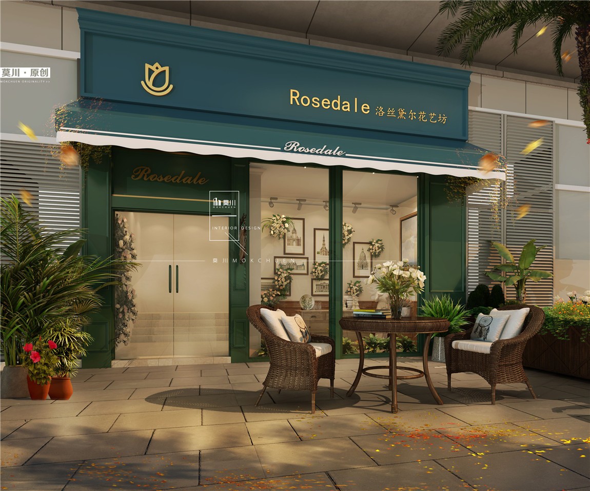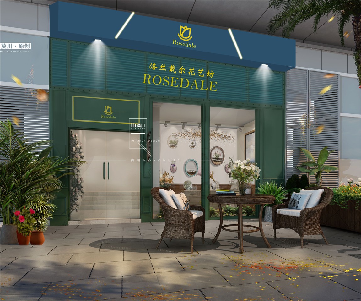 外立面的改造是整個花店的一個重點也是難點,原始的外立面沒有實墻,只有玻璃和百葉區(qū),可改動的空間有限。在不動原始右側百葉區(qū)的前提下,把左側做成假百葉,使整個門充滿整體和連貫性。