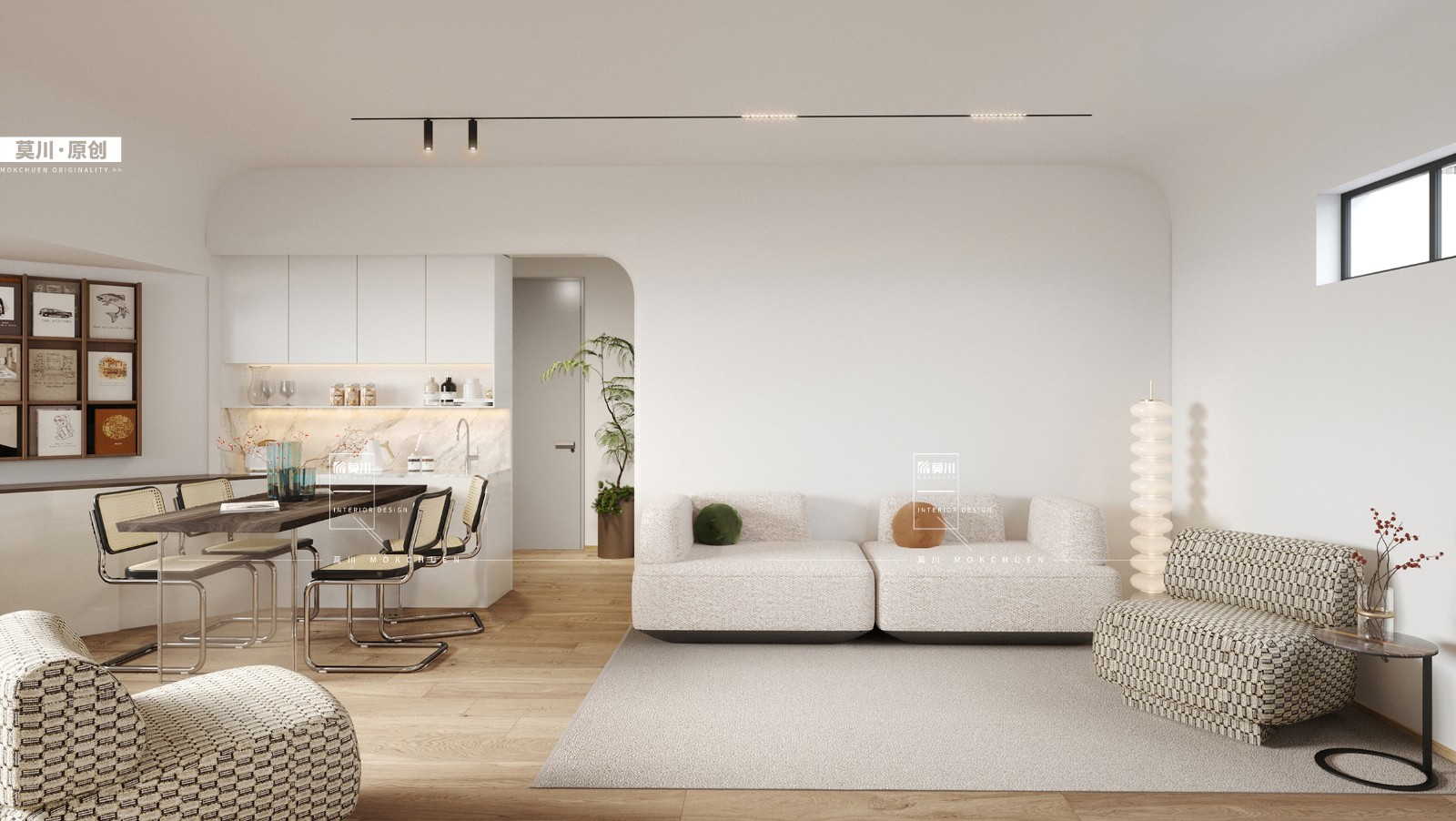舊餐廳是原土建的生活陽臺陽臺有非常低的梁,我們在空間結構上用了曲線來過度各個空間,使得空間整體流暢且協(xié)調(diào)