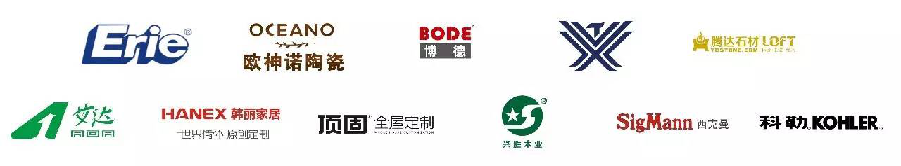 科勒潔具、博德瓷磚、歐神諾瓷磚、佰利鋁合金門窗、德寶-西克曼櫥柜、伊瑞爾凈水器、艾達(dá)木地板、興勝物流、頂固櫥柜、韓麗櫥柜、騰達(dá)石材、大宏玻璃不銹鋼、以及億豪窗意裝飾。